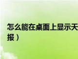 大家好,小太来为大家解答以上问题。怎么能在桌面上显示天气预报,怎样在电脑桌面显示天气预报这个很多人还不知道,现在让我们一起来看看吧! 浏览全文>>