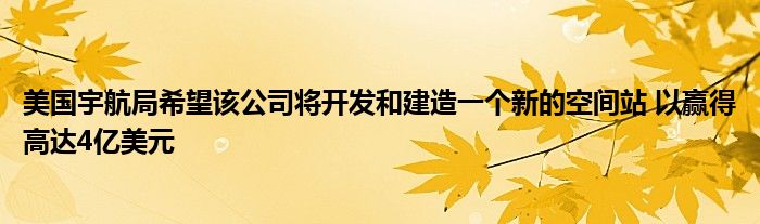 美国宇航局希望该公司将开发和建造一个新的空间站 以赢得高达4亿美元